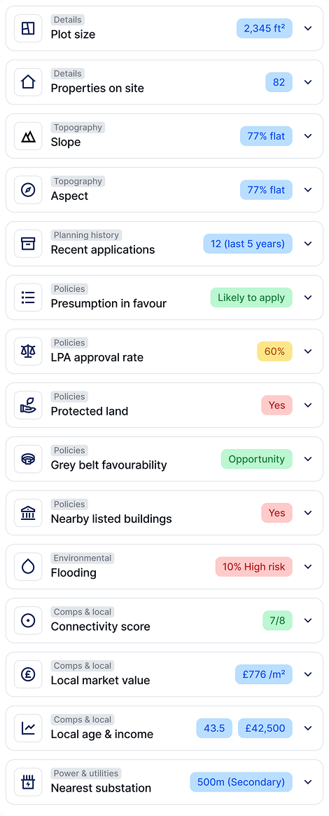 Get instant site summaries with 16 personalised insights on risks and opportunities — so you can qualify faster.